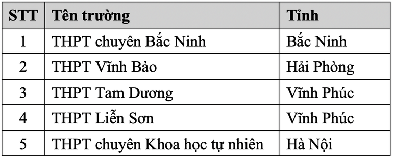 5 thí sinh đạt điểm cao nhất Đánh giá tư duy đợt 1 là các thí sinh đến từ các trường THPT sau:
