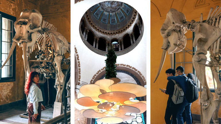 Khắp không gian, từ sảnh chính cho đến hành lang và bảo tàng sinh học, những tác phẩm sáng tạo kết hợp cùng kiến trúc cổ đã biến nơi đây thành một điểm đến độc đáo.