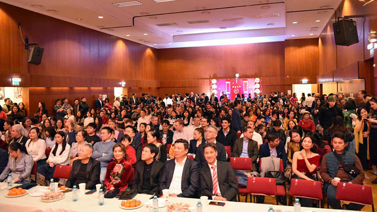 Tới dự Tết Cộng đồng - Xuân Quê hương năm 2025, bà con cộng đồng và khách mời đã cùng thưởng thức đa dạng các món ăn truyền thống ngày Tết như: bánh chưng, nem, giò lụa, chả, xôi, thịt gà và một chương trình văn nghệ đặc sắc với sự góp mặt của các nghệ sĩ của Trung tâm Những người bạn, hội Sinh viên Việt Nam tại Áo, Hội Phụ nữ Việt Nam tại Áo, và các hạt nhân văn nghệ trong cộng đồng.