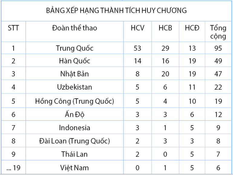 Thi đấu môn cờ vua, hôm qua kỳ thủ Lê Tuấn Minh đã giành thắng lợi trước đồng đội Nguyễn Ngọc Trường Sơn trong khuôn khổ ván đấu thứ bảy. Với kết quả này, Lê Tuấn Minh đã có 5 điểm, bằng điểm với ba kỳ thủ khác nhưng tạm xếp thứ tư. Dẫn đầu nội dung này là kỳ thủ Wei Yi của Trung quốc với 5,5 điểm.