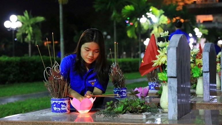 Tại Nghĩa trang Liệt sĩ A1 (ở trung tâm thành phố Điện Biên Phủ), có hàng trăm đoàn viên thanh niên xếp theo hàng lặng lẽ đi từng phần mộ thắp nến, dâng hương; chẳng ai nói với ai, nhưng các em đều bước thật khẽ như để không "đánh thức" các anh giữa màn đêm tĩnh mịch.