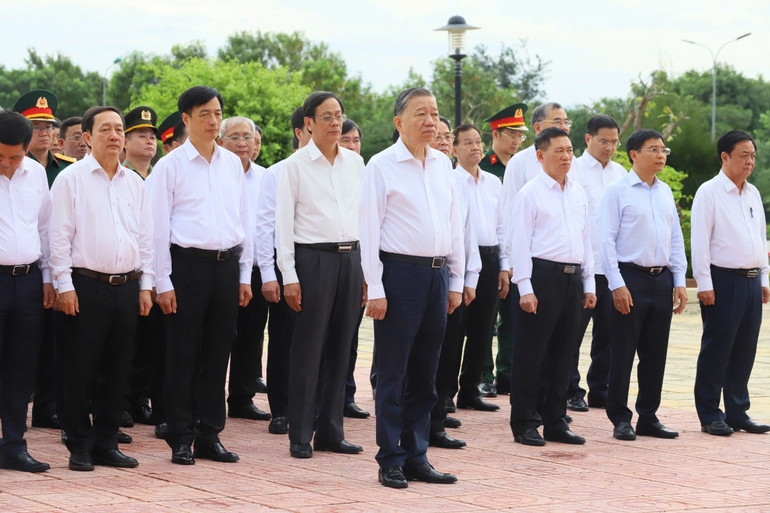 * Sáng cùng ngày, Tổng Bí thư Tô Lâm cùng Đoàn công tác của Trung ương và các đồng chí lãnh đạo địa phương đã đến dâng hương, dâng hoa tưởng nhớ Chủ tịch Hồ Chí Minh và các Anh hùng Liệt sĩ tại Nghĩa trang Liệt sĩ tỉnh Ninh Thuận.