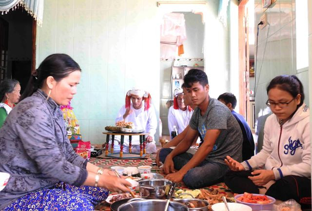 Nghi thức cúng gia tiên khi gia đình sum họp, nhằm mời ông bà cùng hưởng Ramưwan.