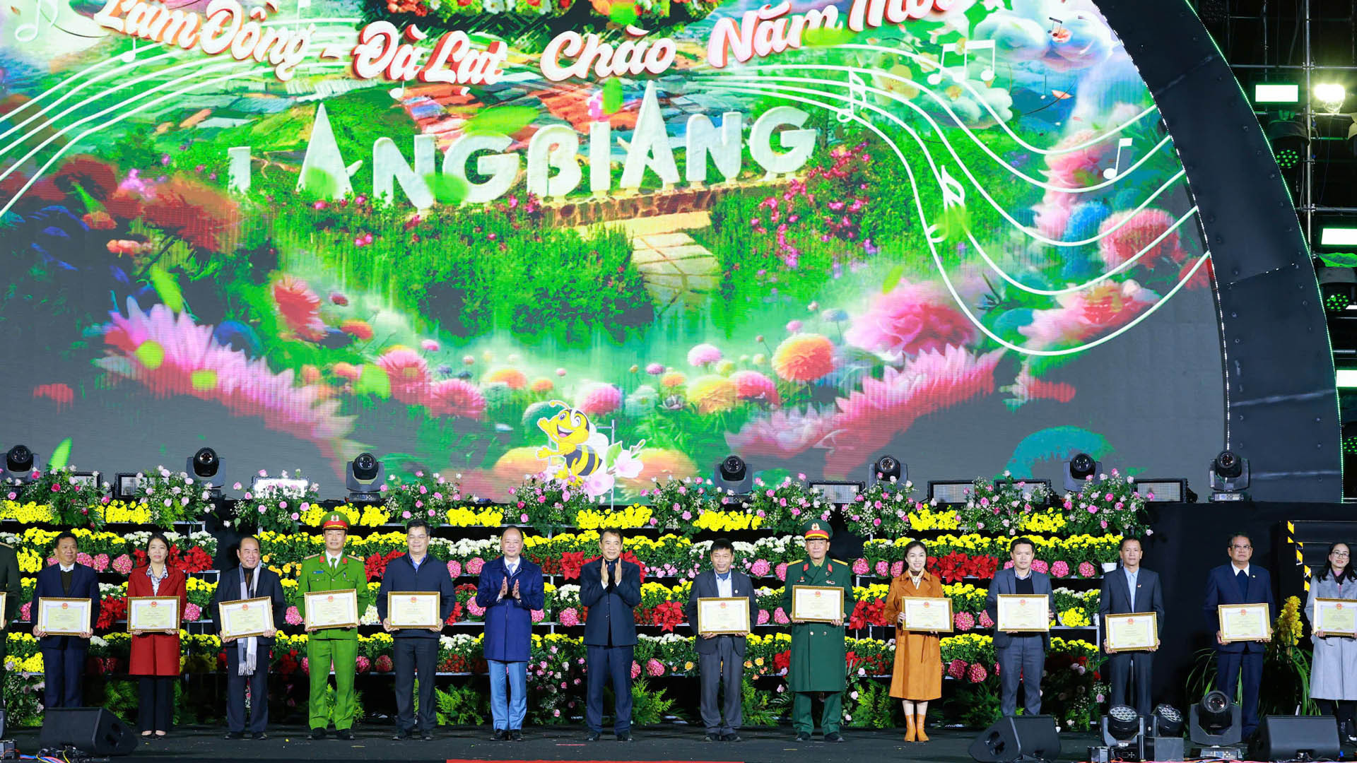 | Lãnh đạo tỉnh Lâm Đồng trao bằng khen Ủy ban nhân dân tỉnh Lâm Đồng tặng các tập thể, cá nhân và hộ gia đình. |