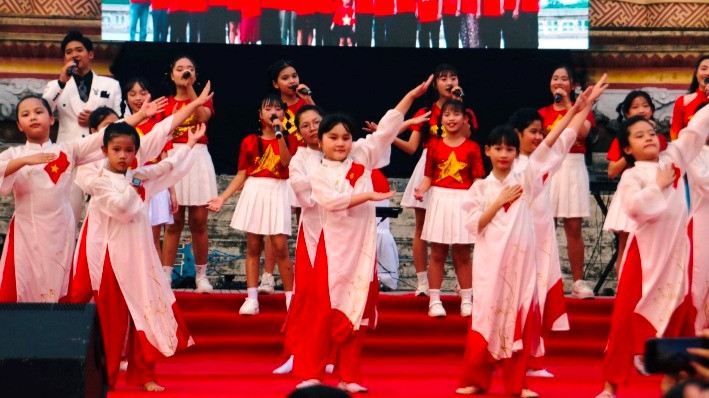 | Màn đồng diễn hưởng ứng chương trình của học sinh thành phố Huế. |