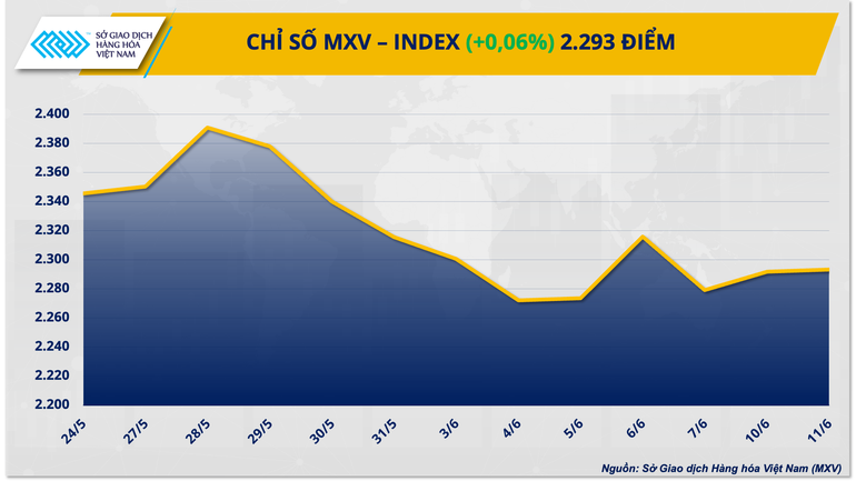 Trong khi đó, sắc đỏ phủ kín bảng giá kim loại và nông sản. Chỉ số MXV-Index giằng co quanh biên độ hẹp, chốt ngày nhích nhẹ 0,06% lên 2.291 điểm.