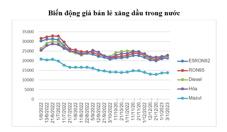 Sau khi thực hiện trích lập và chi sử dụng Quỹ Bình ổn giá xăng dầu, giá bán các mặt hàng xăng dầu tiêu dùng phổ biến trên thị trường như sau: