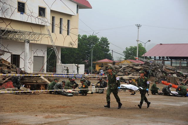 Lực lượng hỗn hợp hai nước diễn tập cứu trợ thảm họa, dịch bệnh.