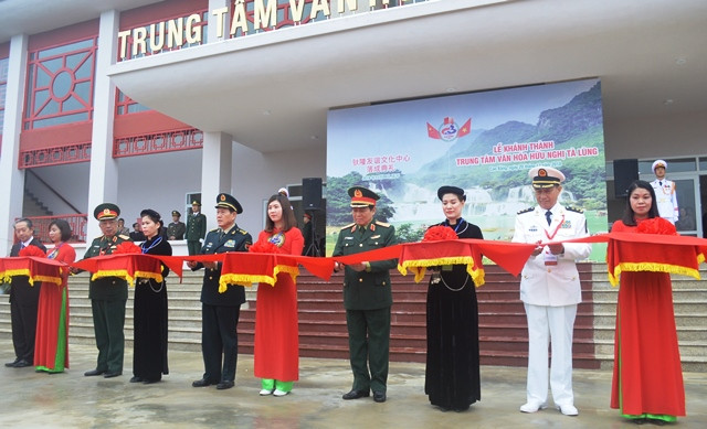 Các đại biểu cắt băng khánh thành Trung tâm văn hóa hữu nghị Tà Lùng.