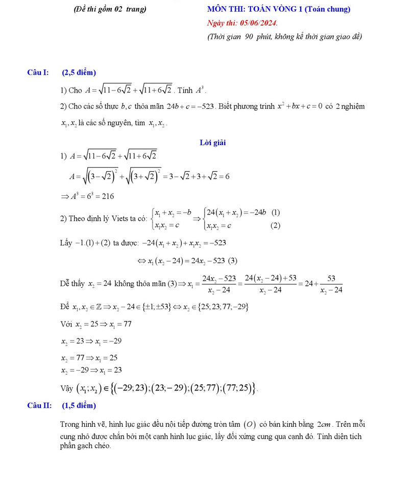 Gợi ý lời giải chi tiết môn Toán (vòng 1) do các giáo viên nhóm Toán tiểu học - THCS - THPT Việt Nam thực hiện.