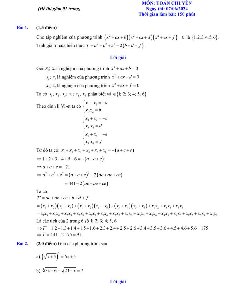 Gợi ý lời giải chi tiết của đề thi môn Toán chuyên tại kỳ thi tuyển sinh vào lớp 10 trung học phổ thông công lập năm học 2024-2025 của Thành phố Hồ Chí Minh do các giáo viên nhóm Toán tiểu học - THCS - THPT Việt Nam thực hiện.