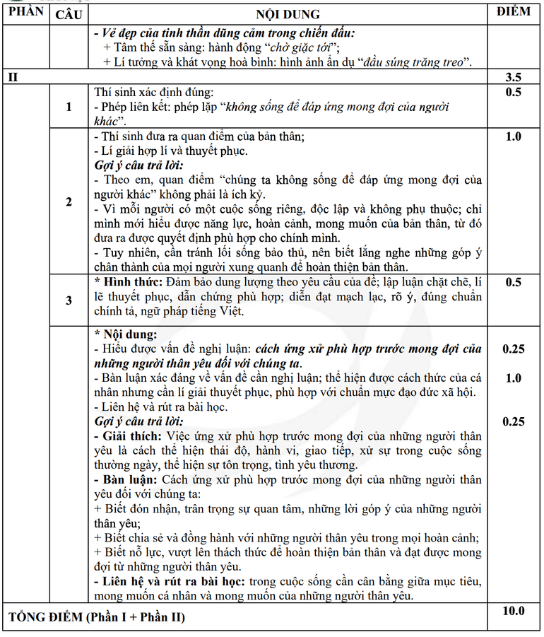 Dưới đây là gợi ý đáp án đề thi môn Ngữ văn tuyển sinh vào lớp 10 năm học 2024-2025 của Hà Nội do các giáo viên Trường trung học phổ thông Hòa Bình - La Trobe thực hiện. Thí sinh dùng để tham khảo.