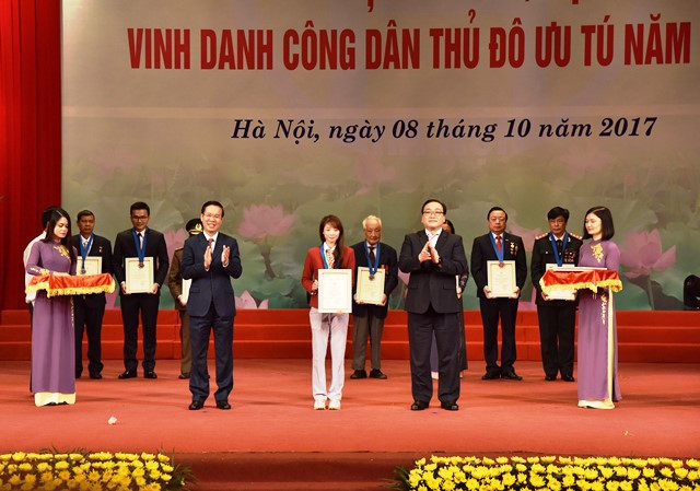 Tại hội nghị, các đồng chí lãnh đạo của T.Ư và TP Hà Nội đã trao tặng danh hiệu “Công dân Thủ đô ưu tú” cho mười cá nhân, gồm: Nghệ sĩ Nhiếp ảnh Lê Vượng, thuộc Hội Liên hiệp văn học Nghệ thuật Hà Nội; Vận động viên Dương Thúy Vi, đội tuyển u-su Hà Nội và đội tuyển u-su quốc gia; PGS, TS Trần Xuân Bách, giảng viên Trường ĐH Y Hà Nội; PGS, TS Nguyễn Thị Bích Thủy, giảng viên Trường ĐH Công nghệ Giao thông vận tải; Thầy thuốc Nhân dân Nguyễn Hồng Siêm, Chủ tịch Hội Đông y TP Hà Nội; ông Nguyễn Hữu Lộc, Trưởng phòng Thanh tra 6, Thanh tra TP Hà Nội; ông Đặng Cát, ở phường Nhật Tân, quận Tây Hồ; Nghệ nhân Lê Bá Chung, ở xã Kiêu Kỵ, huyện Gia Lâm; anh Tạ Đình Huy, ở thôn An Mỹ, xã Thượng Vực, huyện Chương Mỹ; Thượng tá Đào Anh Tuấn, Phó Trưởng phòng PC52, Công an TP Hà Nội.