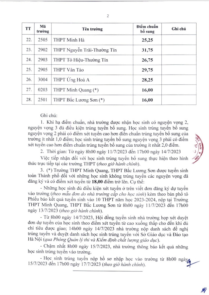 Theo Sở Giáo dục và Đào tạo Hà Nội, khi hạ điểm chuẩn đối với các trường THPT công lập không chuyên, nhà trường được nhận học sinh có nguyện vọng 2, nguyện vọng 3 đủ điều kiện trúng tuyển bổ sung.