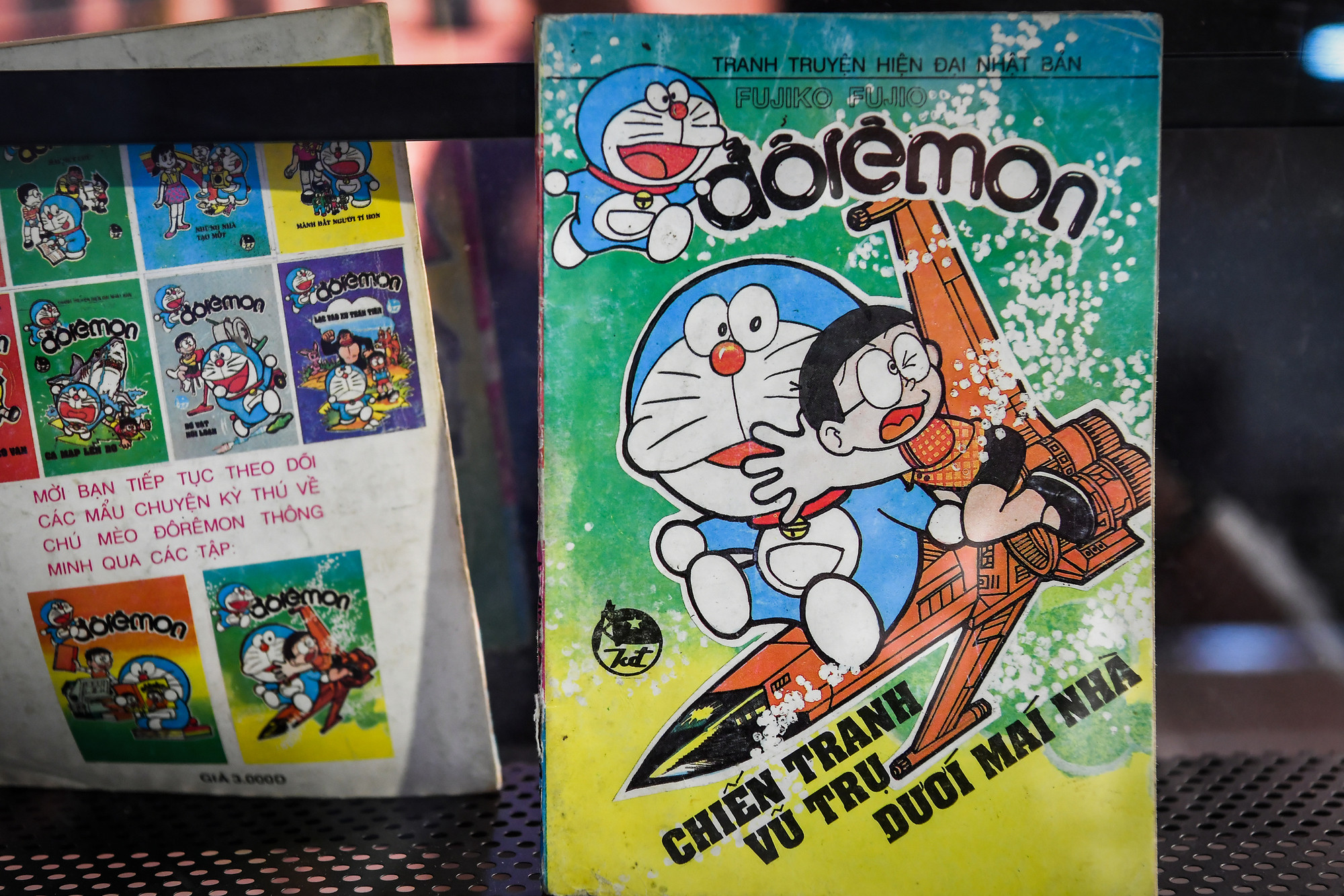 | Ấn phẩm Đôrêmon ngoài cùng bên phải chính là tập đầu tiên đánh dấu chú mèo máy thông minh tới với bạn đọc Việt Nam. Ngay lập tức, cuốn truyện đã làm nên một trong những sự kiện lừng danh của ngành xuất bản Việt Nam; tạo nên cơn sốt chưa từng thấy vào năm 1992. |