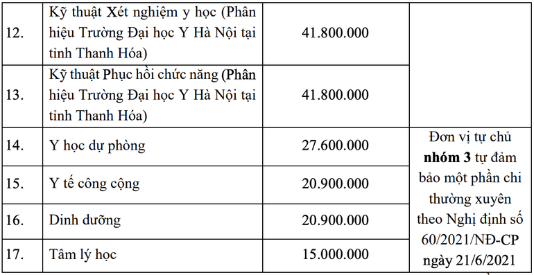 Những ngành có mức học phí cao nhất 55,2 triệu đồng/năm học là: Y khoa, Y khoa phân hiệu Thanh Hóa, Y học cổ truyền, Răng hàm mặt.