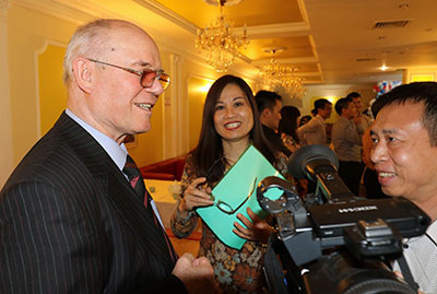Ông N. Kolesnik cùng phóng viên Báo Nhân Dân trong Lễ kỷ niệm Ngày 30-4-2019 tại LB Nga.