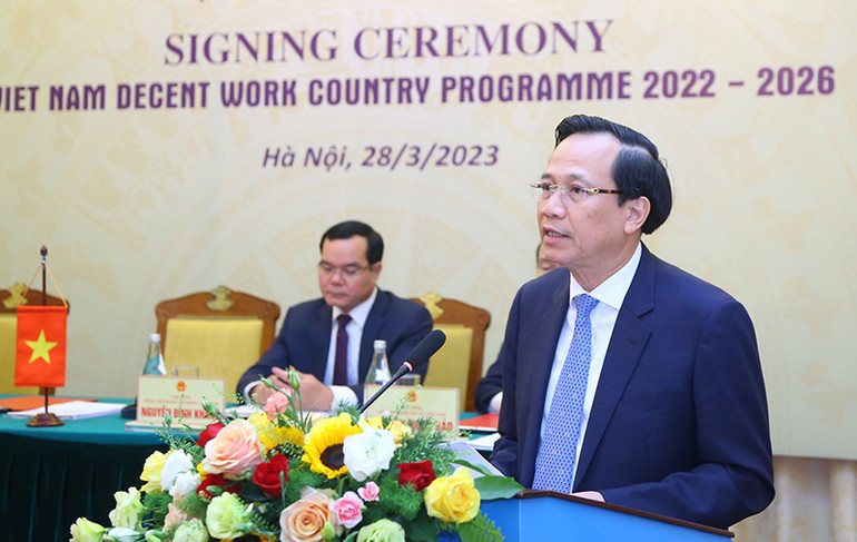 Chiều 28/3, tại Hà Nội, Bộ Lao động-Thương binh và Xã hội, Tổng liên đoàn Lao động Việt Nam, Liên đoàn Thương mại và Công nghiệp Việt Nam, Liên minh Hợp tác xã Việt Nam và Tổ chức Lao động quốc tế (ILO) tại Việt Nam tổ chức lễ ký kết Khung Chương trình quốc gia về việc làm thỏa đáng của Việt Nam giai đoạn 2022-2026.