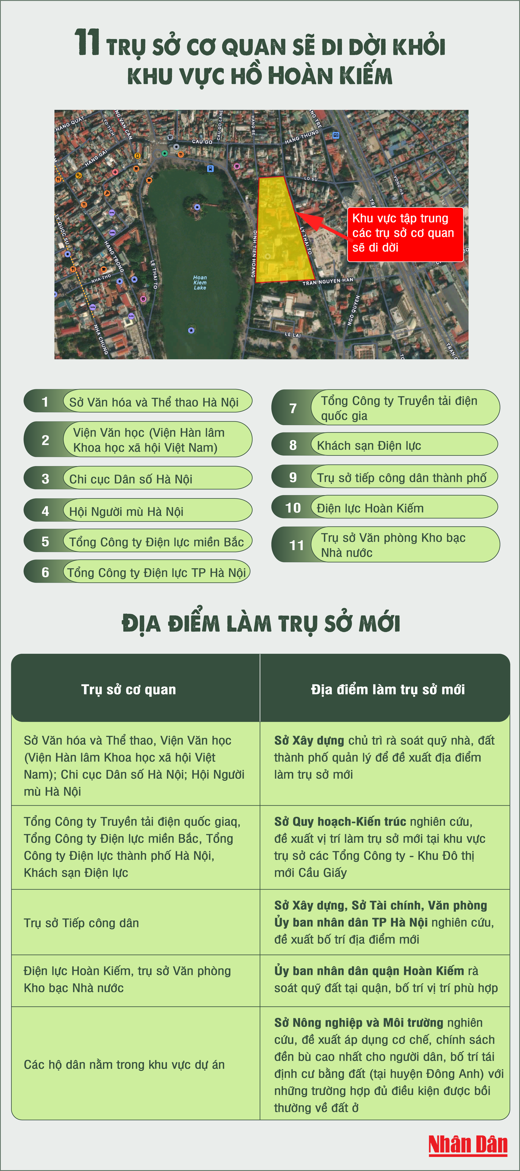 [Infographic] 11 trụ sở cơ quan sẽ di dời khỏi khu vực hồ Hoàn Kiếm