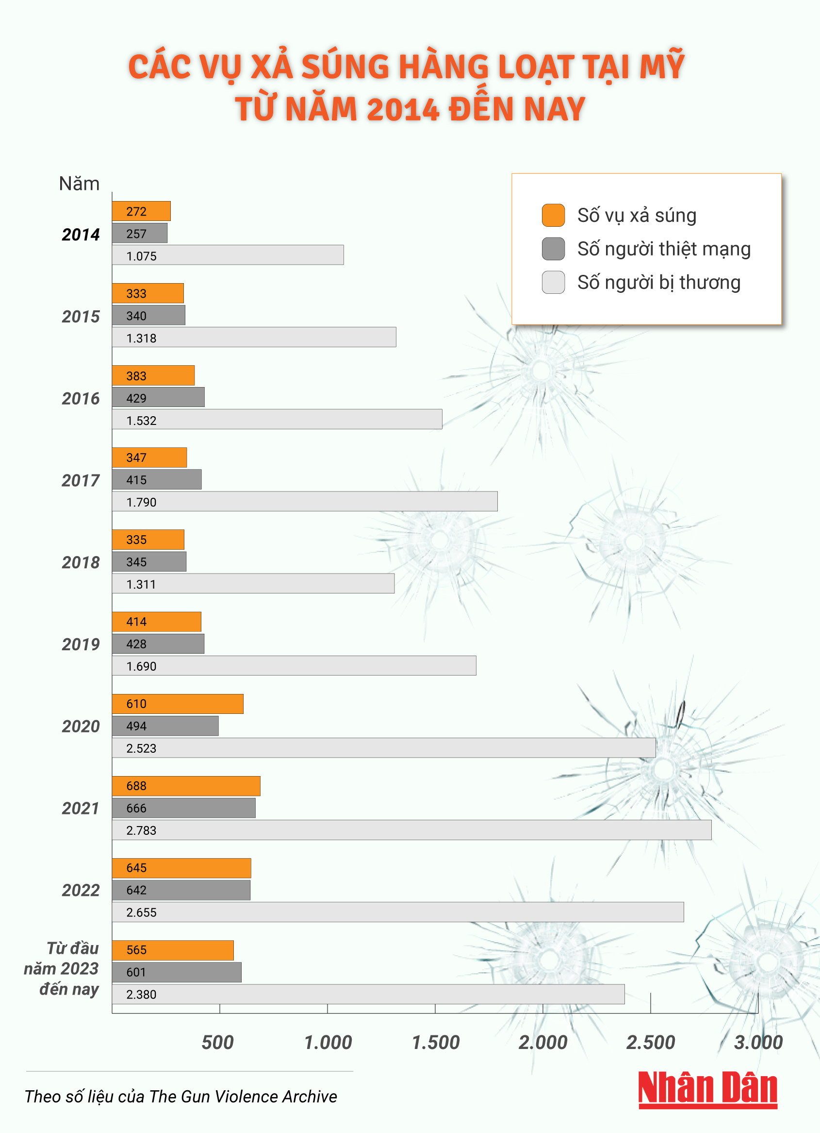The Gun Violence Archive, tổ chức phi lợi nhuận chuyên theo dõi các vụ bạo lực súng đạn tại Mỹ định nghĩa, xả súng hàng loạt là vụ xả súng khiến 4 người trở lên bị bắn và/hoặc bị giết, tại cùng một thời điểm/địa điểm chung, không bao gồm kẻ xả súng.