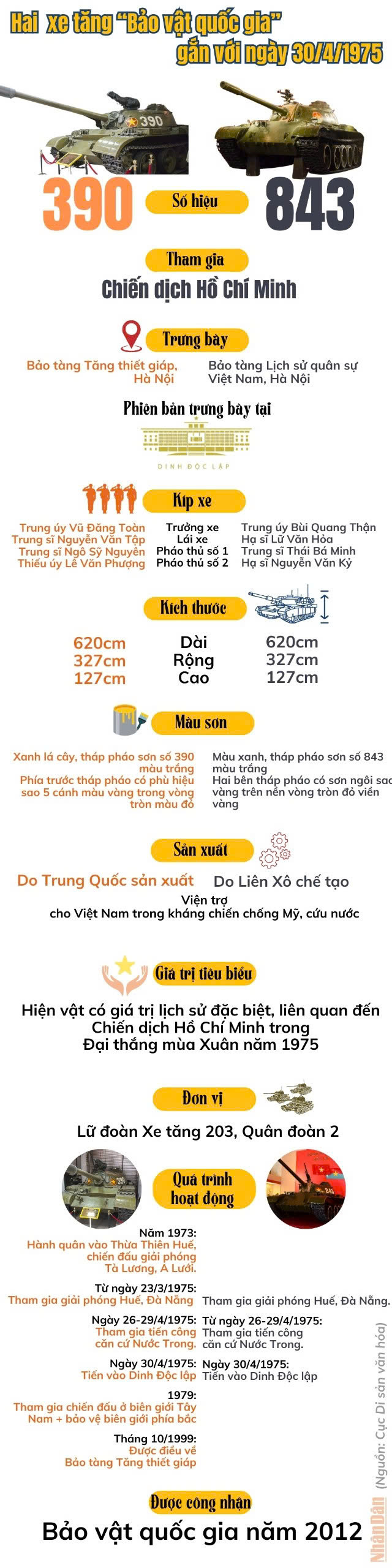 [Infographic] Hai xe tăng “Bảo vật quốc gia” gắn với ngày 30/4/1975
