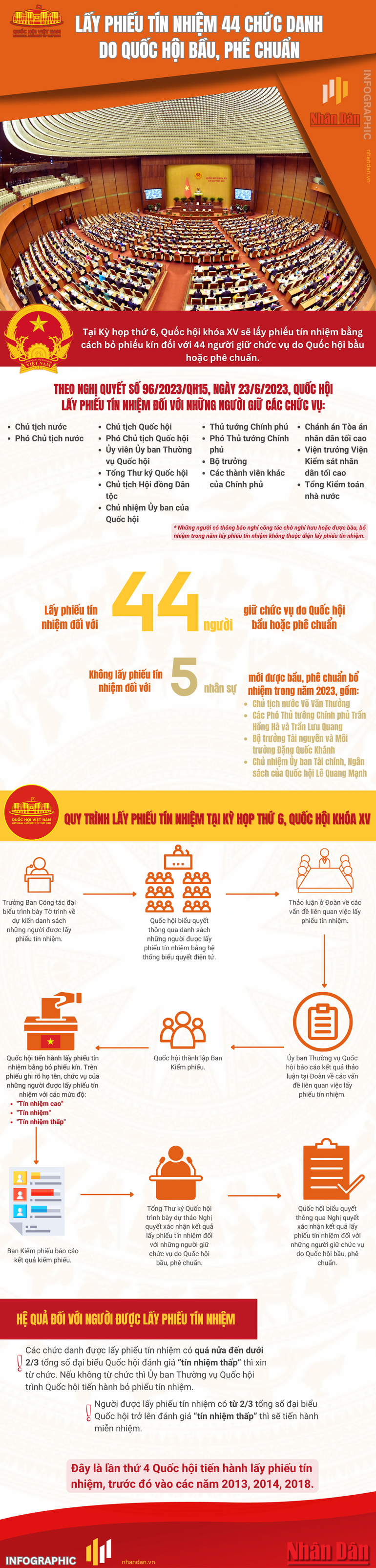 Sáng 25/10, Quốc hội nghe báo cáo kết quả thảo luận về các vấn đề liên quan việc lấy phiếu tín nhiệm và thành lập Ban Kiểm phiếu, tổ chức lấy phiếu tín nhiệm bằng bỏ phiếu kín. Trên phiếu ghi rõ họ tên, chức vụ của những người được lấy phiếu tín nhiệm với các mức độ "tín nhiệm cao", "tín nhiệm", "tín nhiệm thấp".