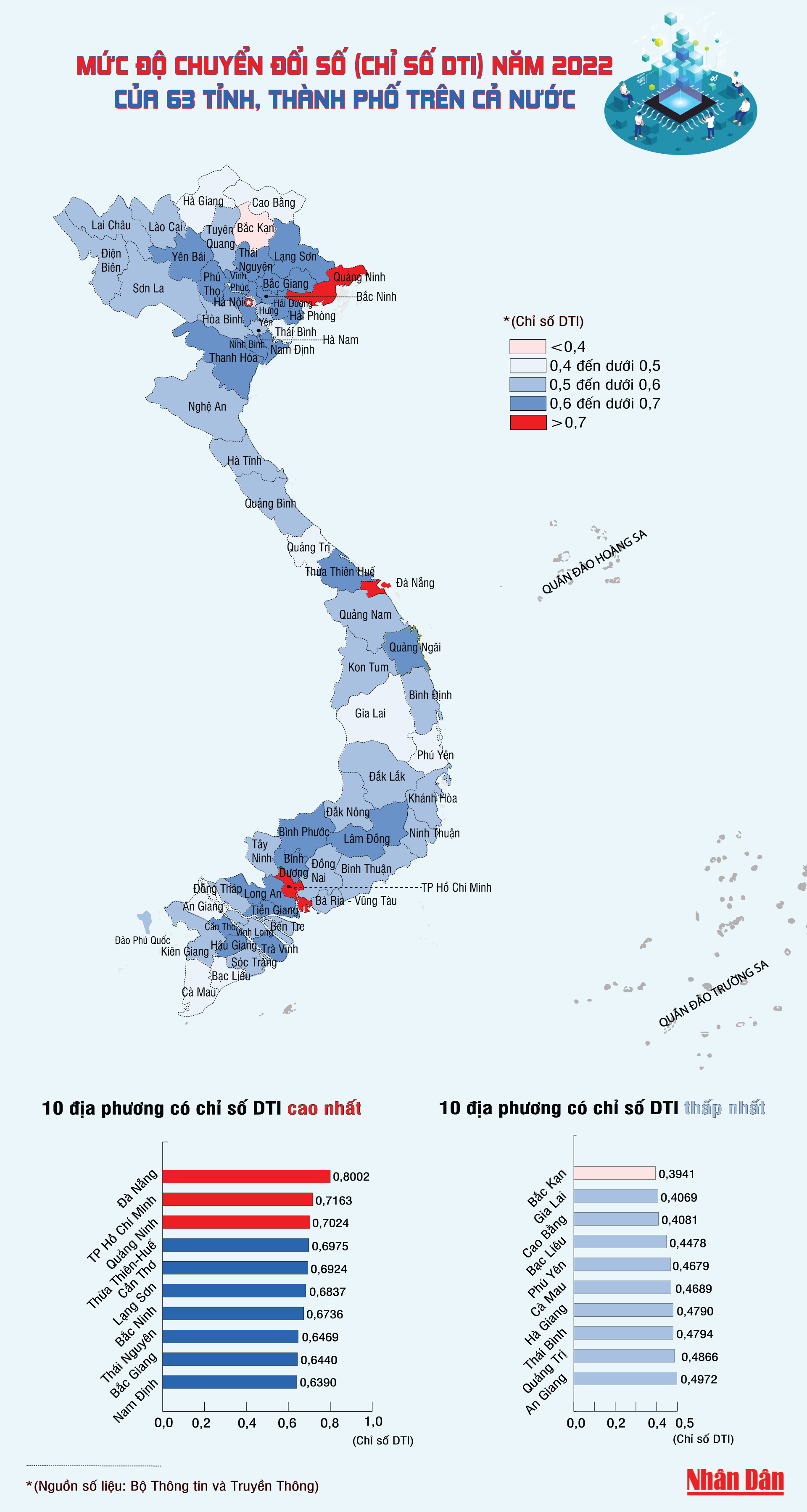 [Infographic] Mức độ chuyển đổi số năm 2022 của 63 tỉnh, thành phố trên cả nước