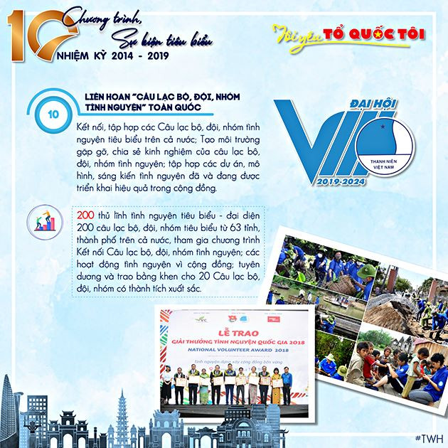 NDĐT - Trước thềm Đại hội đại biểu toàn quốc Hội LHTN Việt Nam lần thứ VIII, nhiệm kỳ 2019-2024, T.Ư Hội LHTN Việt Nam đã công bố mười chương trình, sự kiện tiêu biểu mà thanh niên cả nước đã triển khai thắng lợi trong 5 năm qua.