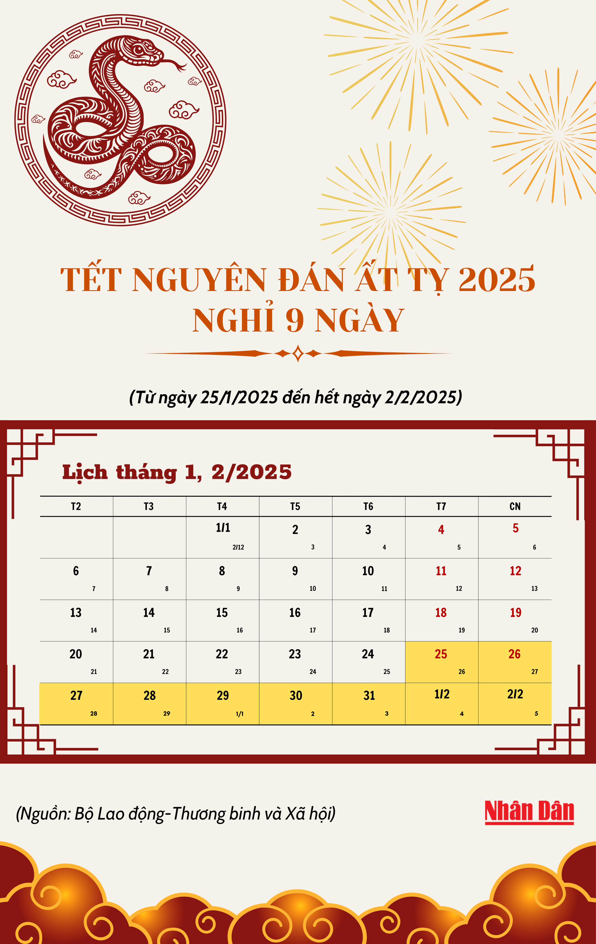 [Infographic] Nghỉ Tết Nguyên đán Ất Tỵ 2025 chín ngày liên tục