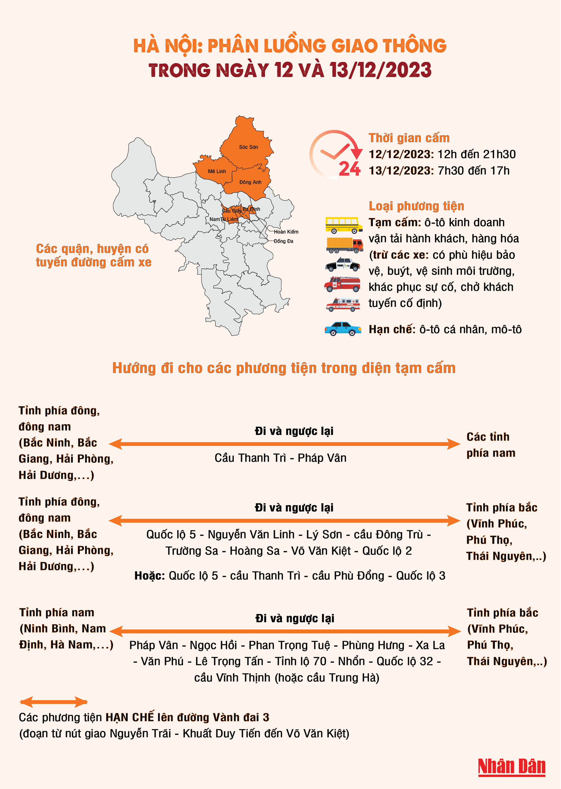 [Infographic] Phân luồng giao thông tại Hà Nội trong ngày 12 và 13/12/2023