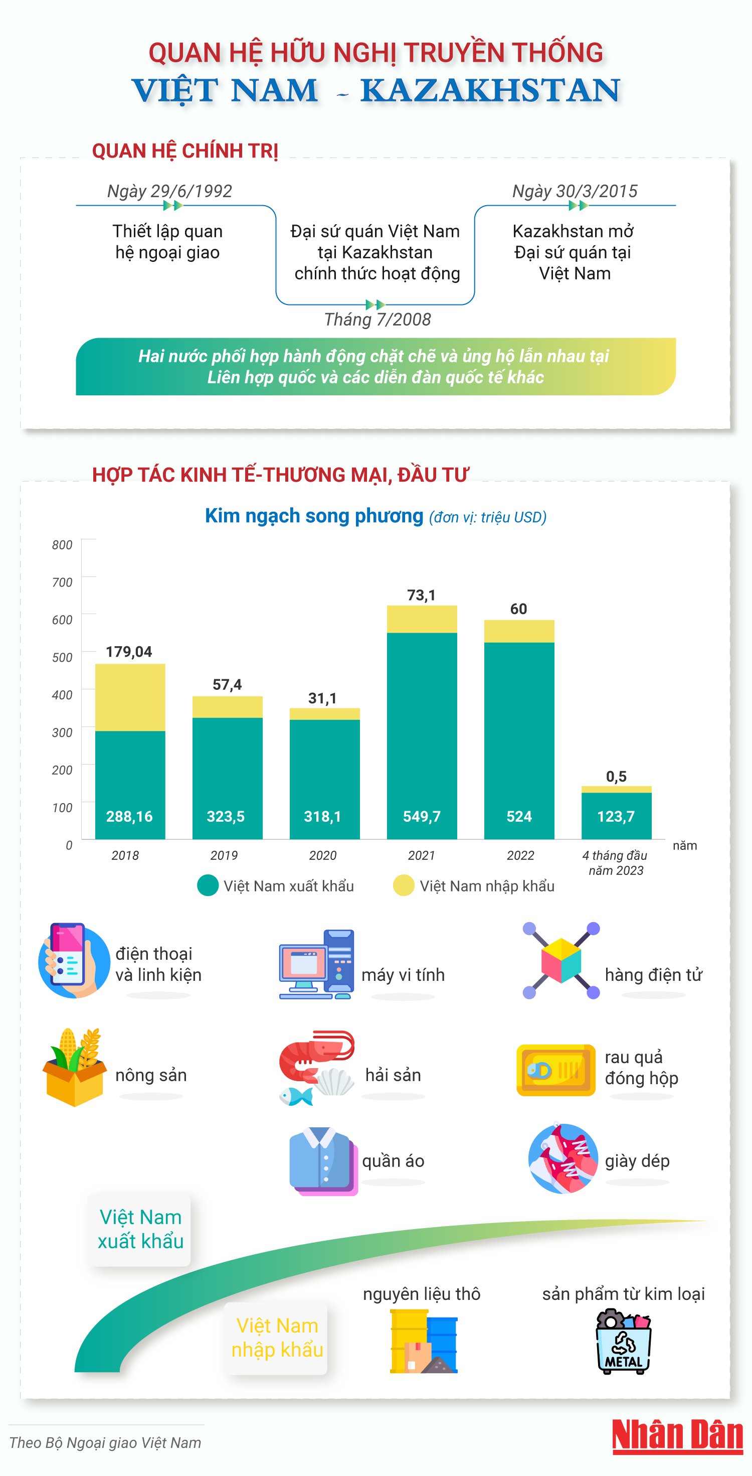 [Infographic] Quan hệ hữu nghị truyền thống Việt Nam-Kazakhstan