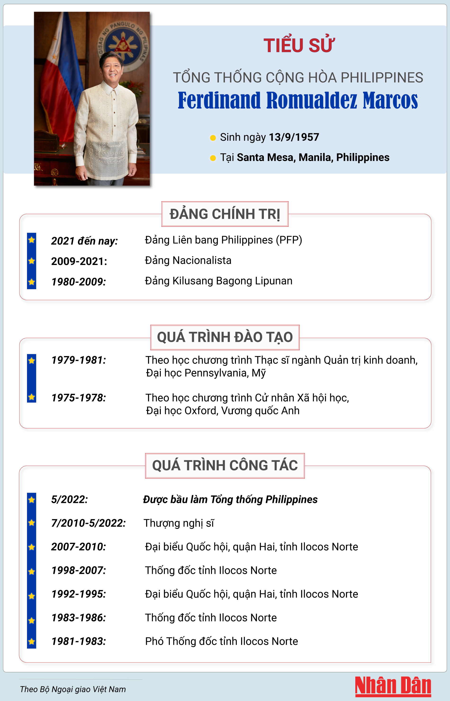 [Infographic] Tiểu sử Tổng thống Cộng hòa Philippines Ferdinand Romualdez Marcos