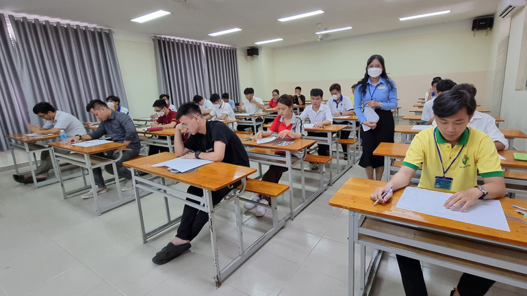 | Các thí sinh bước vào thi môn đầu tiên sau lễ khai mạc. |