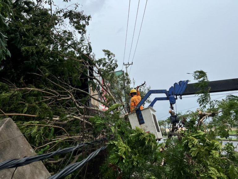 Ngay khi gió giảm, các đơn vị trong vùng bị ảnh hưởng của bão số 4 đã huy động lực lượng, phương tiện ra hiện trường tập trung khắc phục sự cố.