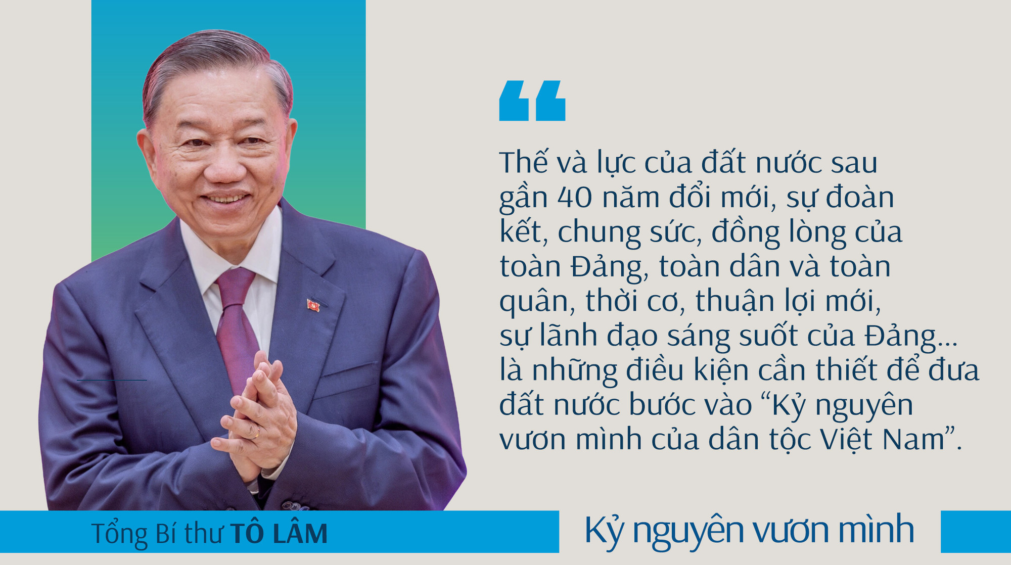 Việc xác định và sử dụng khái niệm “Kỷ nguyên vươn mình của dân tộc Việt Nam”, Trong nhiều bài viết gần đây, Tổng Bí thư Tô Lâm thường xuyên nhắc đến các khái niệm “Kỷ nguyên mới”, “Kỷ nguyên vươn mình của dân tộc Việt Nam”, có thể xem như một thông điệp về một thời kỳ phát triển mới của đất nước ta trong những năm tới, thập kỷ tới, nhấn mạnh quyết tâm hiện thực hóa các mục tiêu phát triển đất nước; tạo ra bước ngoặt lịch sử, mở ra một thời kỳ phát triển mới của quốc gia- dân tộc đang được cán bộ, đảng viên và nhân dân ta hưởng ứng và bạn bè trên thế giới quan tâm. Thế và lực của đất nước sau gần 40 năm đổi mới, sự đoàn kết, chung sức, đồng lòng của toàn Đảng, toàn dân và toàn quân, thời cơ, thuận lợi mới, sự lãnh đạo sáng suốt của Đảng… là những điều kiện cần thiết để đưa đất nước bước vào “Kỷ nguyên vươn mình của dân tộc Việt Nam”.