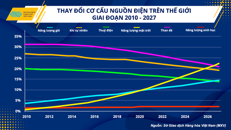 Cơ quan Năng lượng Quốc tế (IEA) nhận định, năng lượng mặt trời và năng lượng gió sẽ có mức tăng trưởng mạnh nhất trong giai đoạn 5 năm tới. Tỷ trọng đóng góp của năng lượng sinh học, thủy điện, than đá và khí tự nhiên sẽ giảm xuống.