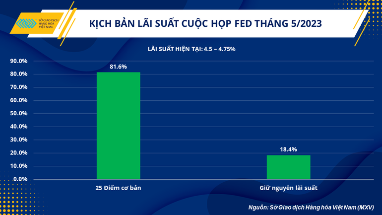 Bên cạnh đó, Công cụ theo dõi của CME cho biết, có tới 81,6% khả năng Cục Dự trữ Liên bang Mỹ (Fed) sẽ kết thúc chu kỳ tăng tăng lãi suất với một đợt tăng thêm 25 điểm cơ bản trong cuộc họp tháng 5 sắp tới. Điều này đồng nghĩa với việc lãi suất đỉnh của Mỹ sẽ nằm trong khoảng 5,00-5,25%, khiến cho dư địa tăng trưởng của đồng USD không còn nhiều. Chỉ số Dollar Index hiện đang ở mức 101,75 điểm.