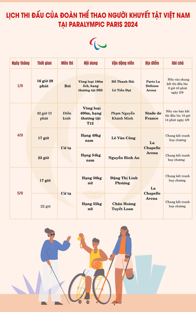 Lịch thi đấu đoàn thể thao Việt Nam tại Paralympic 2024