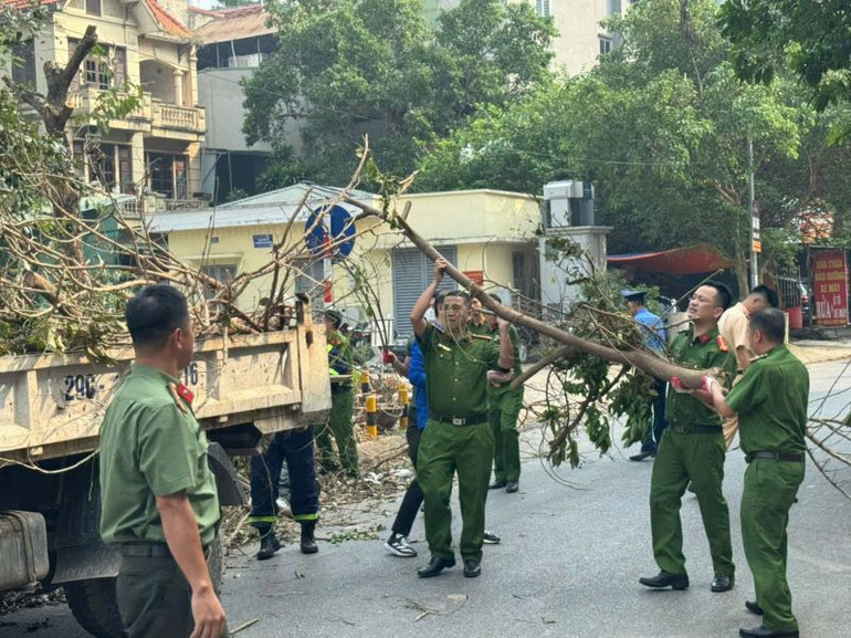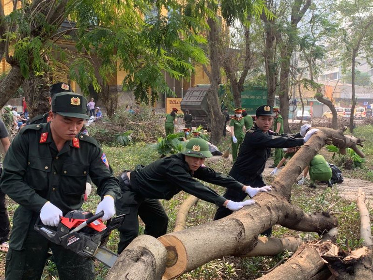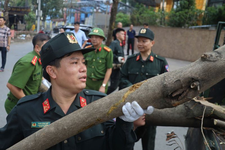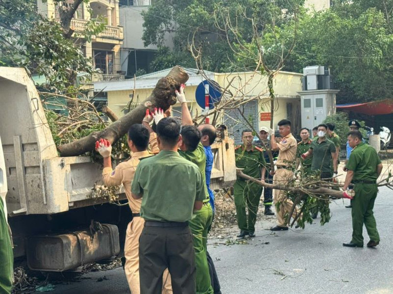 Lực lượng công an tích cực khắc phục hậu quả mưa bão tại Thủ đô