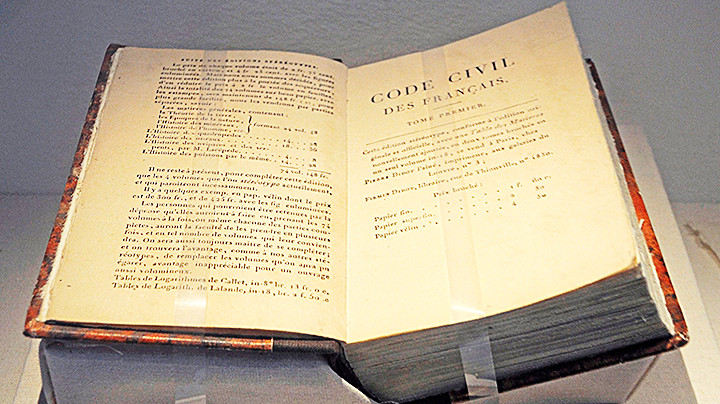Bộ luật Dân sự (trong ảnh) do Hoàng đế Pháp Napoleon Bonaparte ký vừa được mua lại với giá 433.000 USD trong cuộc đấu giá diễn ra tại nhà đấu giá Tajan ở Paris (Pháp). Theo AFP, Bộ luật Dân sự Pháp có bìa làm bằng da, được Napoleon phê chuẩn vào ngày 21/3/1804, sau 4 năm thảo luận và lập kế hoạch. Đây là một trong những biểu tượng pháp lý quan trọng nhất của nước Pháp.