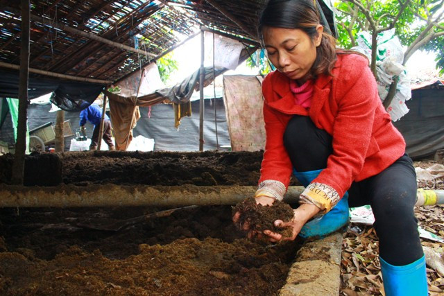 Bà Hoàng Thị Nhàn (vợ ông Vượng) cho biết, vào mùa xuân, thời tiết thuận lợi nên giun sinh sản nhanh hơn.