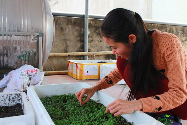 Chị Hương cho biết, trồng rau mầm trên đất bón phân giun quế không gây độc hại và tiết kiệm thời gian chăm sóc.