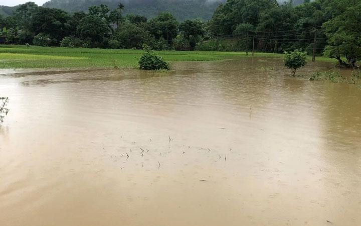 | Nhiều diện tích lúa và hoa màu bị ngập úng. |