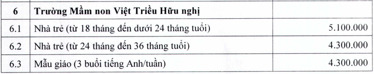Mức thu học phí cao nhất đối với các cơ sở giáo dục mầm non, giáo dục phổ thông công lập tự bảo đảm chi thường xuyên là 6,1 triệu đồng/tháng/học sinh; mức trần học phí của cơ sở giáo dục công lập chất lượng cao là 5,3 triệu đồng/tháng/học sinh.