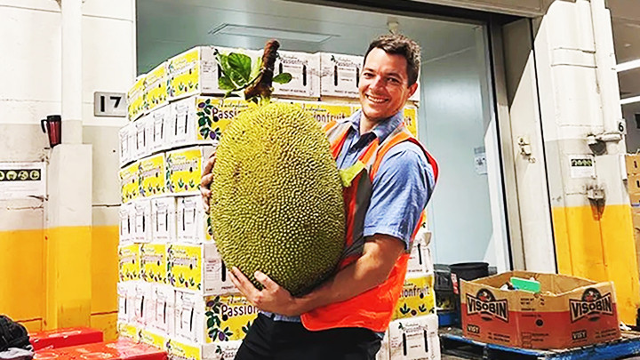 Anh Peter Brighton, chủ nông trại ở Feluga, miền nam thành phố Cairns, bang Queensland (Australia) mới đây thu hoạch được quả mít nặng tới 45 kg (trong ảnh). The Guardian cho hay, trước đó Anh Brighton cũng từng thu hoạch được quả mít nặng 38 kg.