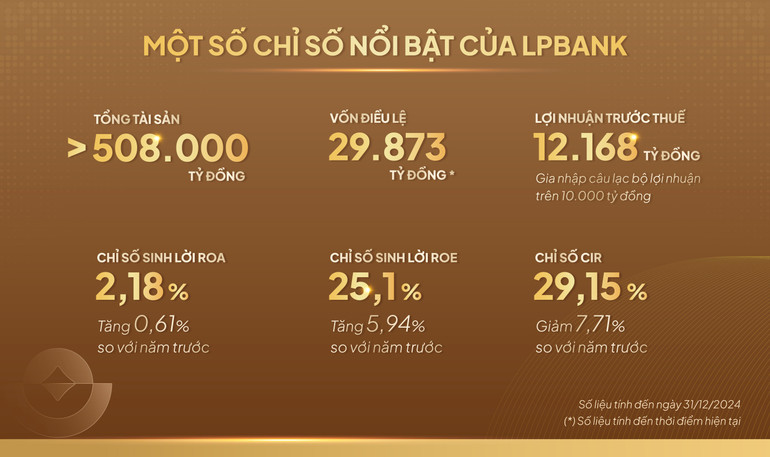 Kết thúc năm 2024, tỷ suất lợi nhuận trên vốn chủ sở hữu (ROE) của LPBank đạt 25,10%, và tỷ suất lợi nhuận trên tài sản (ROA) đạt 2,18%. Những chỉ số này không chỉ cao vượt trội so với mức trung bình ngành, mà còn phản ánh rõ nét hiệu quả sử dụng vốn và tài sản, minh chứng cho các chiến lược kinh doanh hiệu quả của LPBank. Việc tối ưu hóa chi phí hoạt động thông qua ứng dụng công nghệ số để tự động hóa quy trình, rà soát và cải tiến các quy trình cũng giúp LPBank nâng cao hiệu quả hoạt động và tối ưu chi phí. Tỷ lệ chi phí trên thu nhập (CIR) giảm từ 36,86% xuống 29,15% so với 2023 cho thấy hiệu quả trong quản lý chi phí.