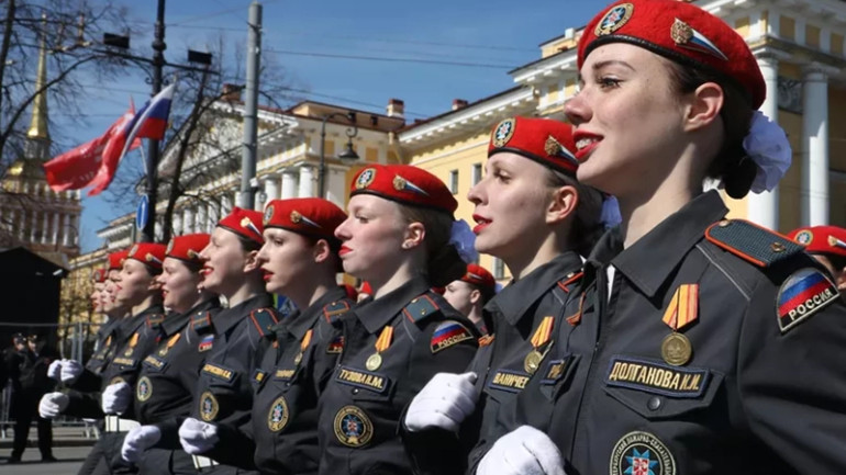 | Các nữ học viên tham gia diễu hành ở St. Petersburg. (Ảnh: RIA Novosti) |
