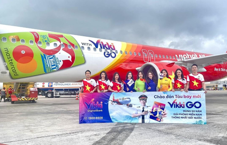 Đặc biệt, dịp này Vietjet cũng ra mắt tàu bay mang hình ảnh biểu tượng kỷ niệm 50 năm Ngày Giải phóng miền nam, thống nhất đất nước (30/4/1975-30/4/2025). Xuất hiện nổi bật cùng thiết kế được làm mới cùng Vikki Digital Bank, biểu tượng kỷ niệm 50 năm Ngày Giải phóng miền nam, thống nhất đất nước trên thân tàu bay Vietjet được giới thiệu cùng bạn bè khắp năm châu, lan toả niềm tự hào, tinh thần đoàn kết, gắn bó sức mạnh hào hùng, hình ảnh của hoà bình, hạnh phúc.