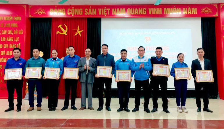 Các tập thể và cá nhân có thành tích xuất sắc của Huyện Đoàn Thanh Trì nhận bằng khen của Thành Đoàn Hà Nội.