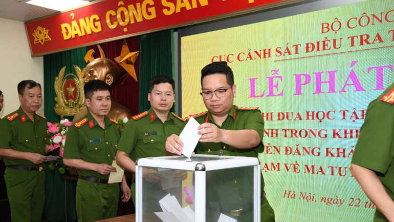 Chiều 22/4, tại Hà Nội, Cục Cảnh sát điều tra tội phạm về ma túy tổ chức Lễ Phát động phong trào thi đua học tập tấm gương dũng cảm của Liệt sĩ, Thiếu tá Nguyễn Đăng Khải, cán bộ Phòng Cảnh sát điều tra tội phạm về ma túy, Công an tỉnh Quảng Ninh đã anh dũng hy sinh trong khi truy bắt tội phạm ma túy.